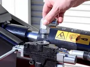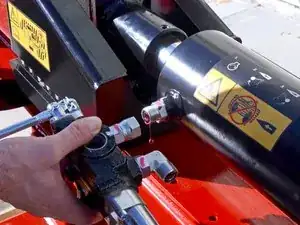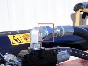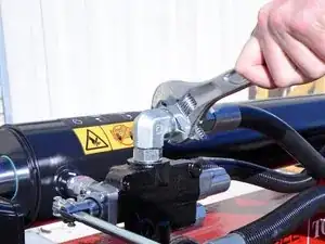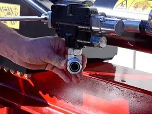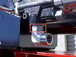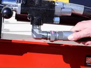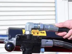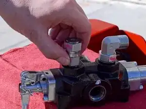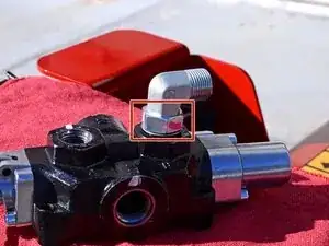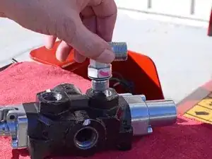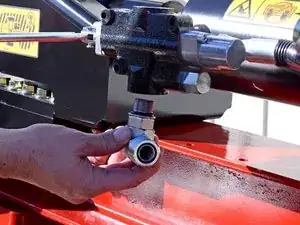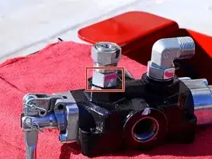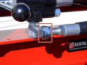 Используйте разводной ключ, чтобы ослабить гайку, фиксирующую шланг удлинения поршня к угловому штуцеру на задней части управляющего клапана.