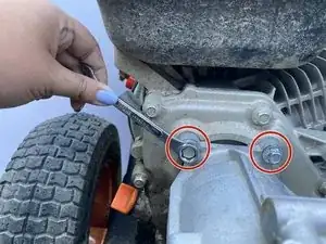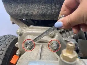 Используйте рожковый или накидной ключ, чтобы ослабить болты. Для гаечного ключа места недостаточно.