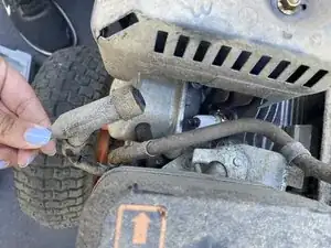 Отключите свечу зажигания, взявшись за неё и потянув наружу.