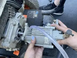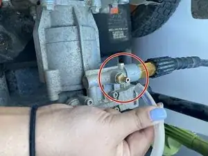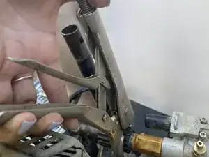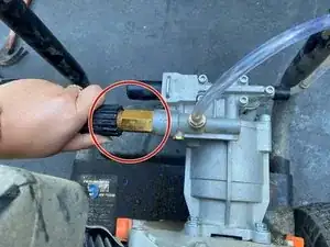 Попробуйте повернуть шланг высокого давления вручную, чтобы снять его. Если он слишком тугой, используйте тиски-кусачки или плоскогубцы Channellock на захвате, чтобы ослабить и снять шланг. Держите захват уверенно, чтобы не сорвать рукоятку.