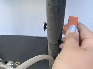 Чтобы снять рукоять, открутите оранжевые треугольные ручки с обеих сторон. Удерживая обе стороны крепко, оттяните рукоять от мойки высокого давления.