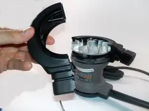 Для выполнения этой инструкции сначала необходимо выполнить шаги по разборке подошвы шлифовальной машины, а также пылезащитного уплотнения/тормоза. Затем нужно будет разобрать наружную защиту, чтобы получить доступ к вентилятору для его замены.