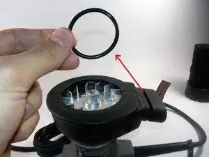 Очень осторожно подденьте уплотнительное кольцо из паза нейлоновой лопаткой или пластиковым инструментом для вскрытия. Затем снимите его с отверстия, как показано.