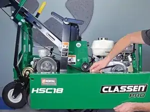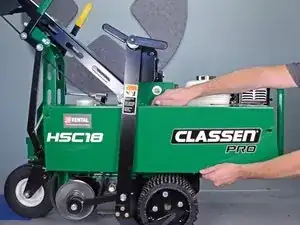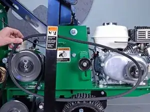 Следуйте этому руководству, чтобы заменить верхний клиновой ремень на газонорезе Classen модели HSC18AHD 2018 года.