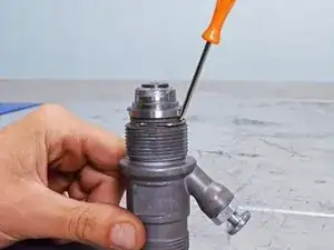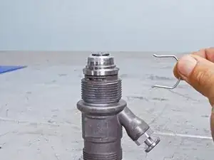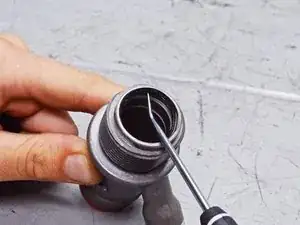 Используйте плоскую отвертку, чтобы поддеть и снять зажим, фиксирующий впускной клапан.