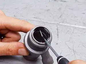 Используйте инструмент с остриём, чтобы вынуть уплотнительное кольцо (О-ринг) из корпуса впускного клапана.
