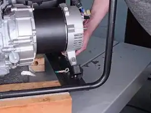 Установите опорные бруски под серебристую заднюю крышку генератора, чтобы поддержать узел генератора.