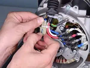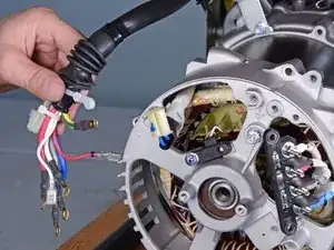 Сожмите и отсоедините разъем статора от жгута проводов.