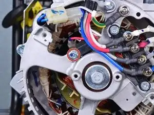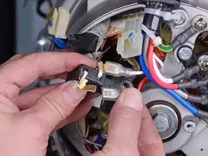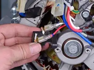 При сборке снова используйте вторую фотографию в качестве ориентира для подключения проводки щеточного узла.
