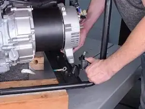 Осторожно приподнимите заднюю часть генератора, чтобы получить доступ к болтам под рамой.