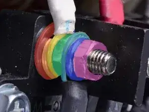 При сборке используйте эти фотографии как ориентир для последовательности укладки элементов на штыре клеммы. От основания к концу: