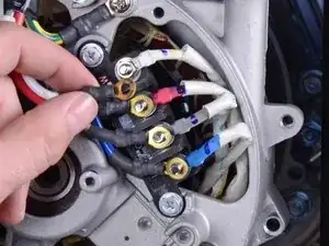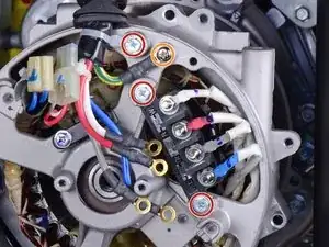 Используйте торцевой ключ на 8 мм, чтобы вывернуть три болта, фиксирующие клемму проводки и жгут.