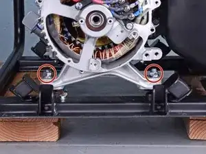 Используйте торцевой ключ на 12 мм, чтобы вывернуть два болта под рамой, которые фиксируют задний корпус генератора.