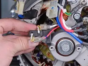 Отсоедините два плоских наконечника (клапана) от щеточного узла.