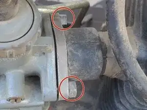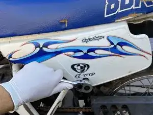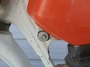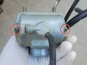 Снимите бензобак, выкрутив по два винта 8 мм с обеих сторон с помощью головки.