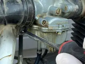 Если мотоцикл недавно работал, в карбюраторе может оставаться топливо — будьте осторожны, чтобы не пролить его.