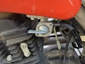 Перед началом разборки сначала перекройте подачу топлива, повернув кран, расположенный с левой стороны мотоцикла, в положение «выключено».