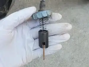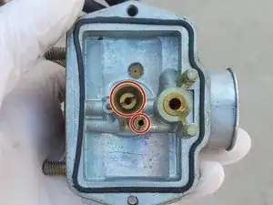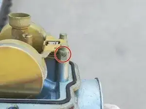 Открутите верхнюю крышку карбюратора и вытащите проволоку, соединённую с иглой топливного клапана. Отложите крышку в сторону.