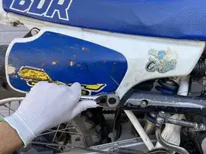 Снимите сиденье, выкрутив по два винта 8 мм, расположенных на 2/3 длины сзади сиденья по обеим сторонам.