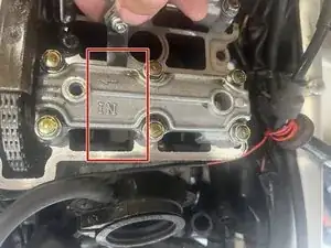 Открутите второй винт головкой Аллен 8 мм. Мы сможем увидеть, находится ли мотоцикл в ВМТ, и установить его на F или R в зависимости от того, что проверяем.