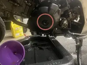 Когда поток охлаждающей жидкости замедлится до капания, поставьте мотоцикл в вертикальное положение, чтобы слить остатки.