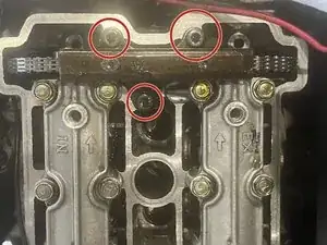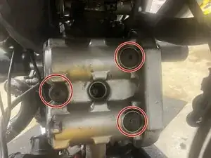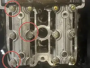 Используйте шестигранную головку 6 мм, чтобы снять все три этих болта. Они удерживают крышку на передней и задней головках.