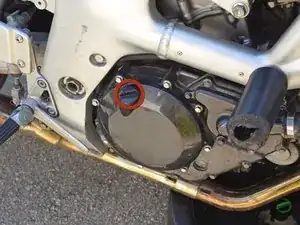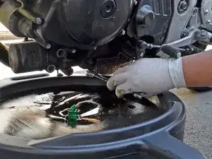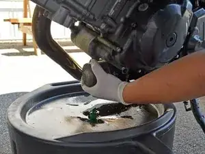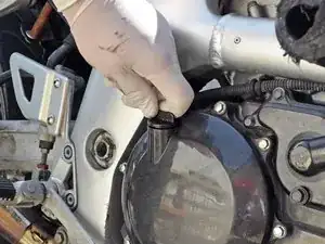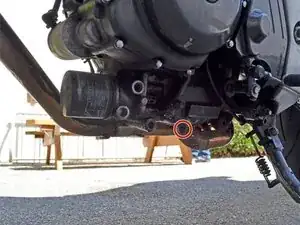 Найдите сливную пробку масла с 14 мм головкой на нижней стороне мотоцикла.