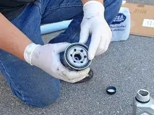 Нанесите тонкий слой чистого масла на резиновую прокладку нового масляного фильтра.