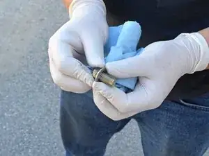 Окуните чистый перчаточный палец в бутылку с новым маслом.