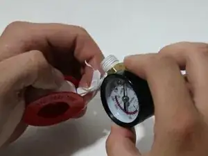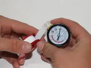 Обмотайте ленту для резьбы вокруг манометра 2–3 раза против часовой стрелки.