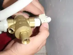 Накрутите подводящую трубку на штуцер, прикреплённый к регулятору.