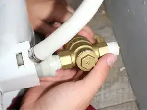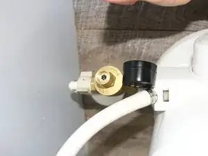 Накрутите регулятор на заднюю часть туалета в месте, где была подсоединена водопроводная трубка.