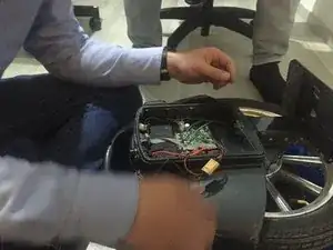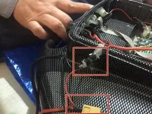 Вторая батарея имеет те же разъемы: один для зарядки, другой для разрядки; они были зажаты в промежутке под верхней частью шасси. Отключите их оба.