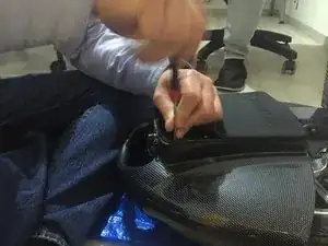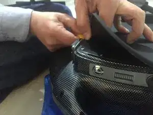 Поднимите пластиковую крышку, чтобы получить доступ к батарее. Отключите большой желтоватый разъем.