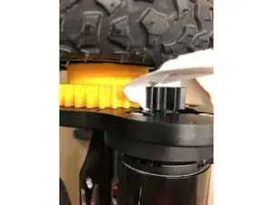 Прикрепите колесо к подвесу и опустите мотор, чтобы подготовиться к зацеплению шестерен.