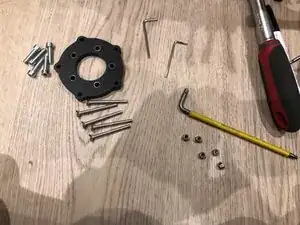 Используйте прилагаемые болты M3, чтобы прикрепить монтажную пластину колеса к ступице колеса.