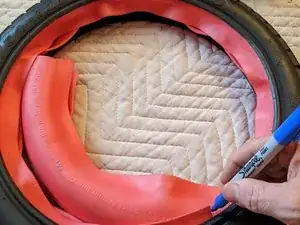 Продолжайте процедуру, начиная с шага 15 инструкции «Замена камеры электрического одноколёсного велосипеда InMotion V8 (и его модификаций)».