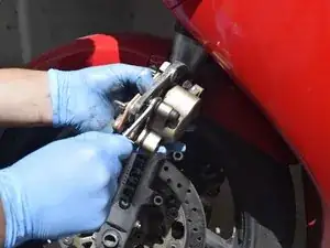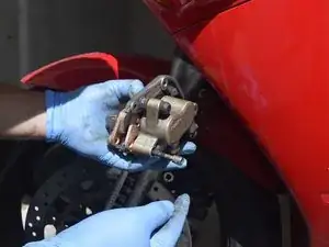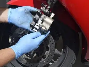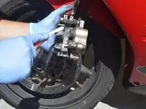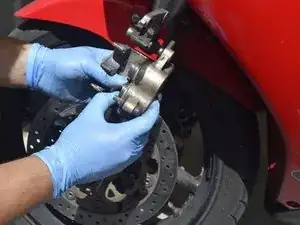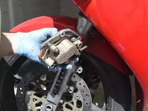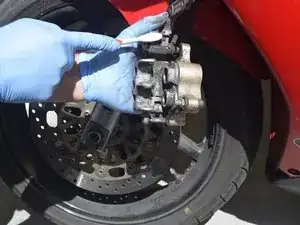 Поскольку у VFR 750 два передних диска, повторите эти шаги с противоположной стороны, чтобы заменить колодки на втором суппорте.