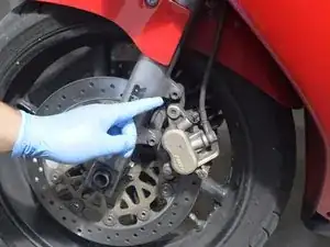 Перед началом работ убедитесь, что тормозные диски и суппорты остыли, если мотоцикл недавно эксплуатировался.