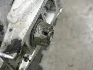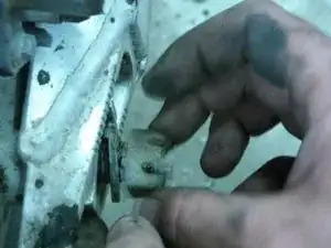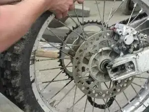 Болт уже снят с оси, поэтому используйте резиновую киянку, чтобы выбить ось из колеса. После того как ось пройдет достаточно, вы можете доручить её остаток вручную.