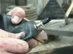 Поместите новую камеру в покрышку. Протяните вентиль через отверстие в ободе и наденьте одну из гаек на вентиль (не на фиксатор борта). Надуйте камеру немного воздуха (чем меньше, тем лучше).