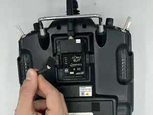 На задней панели пульта найдите антенный блок, помеченный красным.