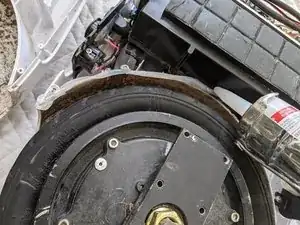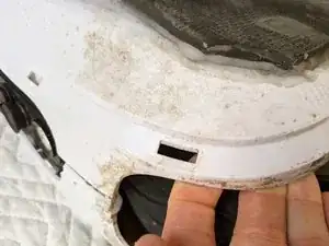 Откройте корпус, начиная с ниши колеса. Если вы уже следовали этой процедуре раньше, придётся разорвать уплотнение над нишей колеса.