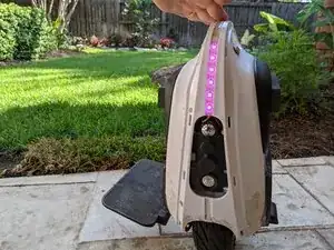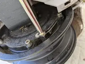 Снимите два фиксирующих винта с шестигранной головкой 5 мм, по одному на каждом конце левой подножки