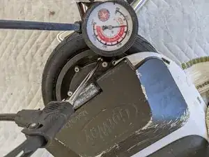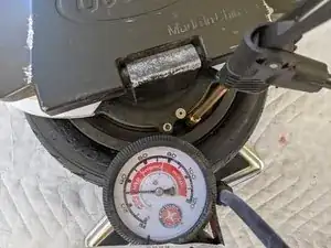 Сердечник вентиля всё ещё удалён. С помощью ручного насоса быстро и слегка перекачайте до давления чуть выше рабочего. Вы можете услышать щёлчок, когда борт встанет на место, у меня этого не было.