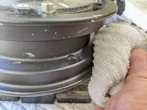 Осмотрите внутреннюю часть обода там, где сидел борт шины, визуально и на ощупь. Используйте наждачную бумагу, чтобы удалить коррозию или задирания.