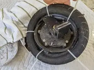 Для каждого хомута сожмите оба борта шины вместе, оставив камеру внутри шины. Затяните хомут так, чтобы борта держались сомкнутыми. Это позволит бортам опуститься в центральный канал колеса.