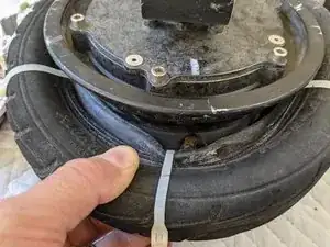 Проденьте не менее пяти пластиковых хомутов между ободом и камерой/шиной, полностью через канал, равномерно распределяя их по ободу.