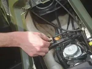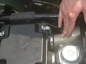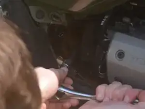 Используйте трещотку с головкой на 10 мм, чтобы выкрутить винт на правой стороне дна чёрного корпуса воздушного фильтра.