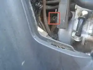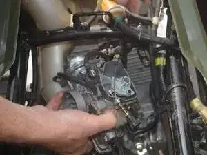 Отсоедините электрический разъём датчика, расположенный на верхней раме с правой стороны квадроцикла.
